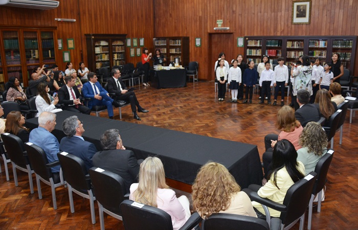Finalizada la firma de los Convenios, especialmente invitado por la Oficina de Niños, Niñas y Adolescente -ONNA-, se presentó el Coro de Niños de 8 años de la Escuela Superior de Música, dirigido por la profesora María Estela Leytón.