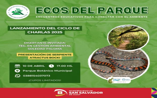 Este miércoles 10 de abril, en el marco del Día Nacional del Investigador Científico, se celebrará el lanzamiento de “Ecos del Parque”, un ciclo de encuentros educativos que tendrá lugar en el Parque Botánico Municipal, la reserva natural urbana de la ciudad.