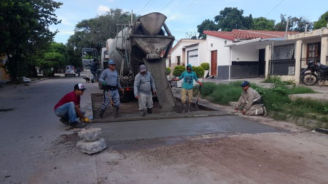 El personal de Pavimentación estuvo realizando el hormigonado en calle Ecuador de barrio Santa Rosa de Lima, donde se realizará el saneamiento integral de la misma, también se lleva a cabo bacheo en calle Puerto Argentino de barrio Patricios, en calle Sarmiento ubicada en el casco céntrico, en calle Santa Fe y avenida San Luis de barrio Albornoz, también Santa Fe y San Juan de barrio Belgrano y en calle 24 de septiembre de barrio Ejército del Norte.