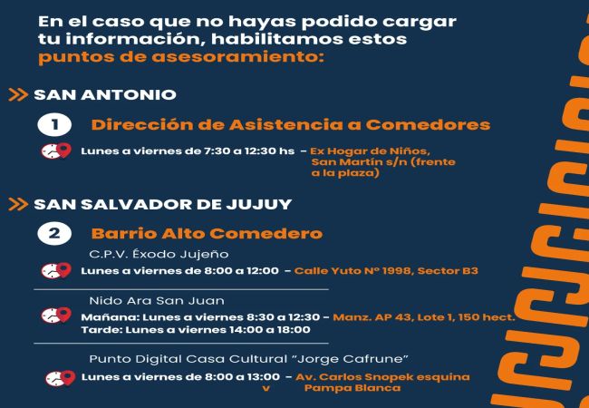 Además, el Ministerio brindará soporte técnico personalizado y habilitará Puntos de Ayuda, con la colaboración de la Municipalidad de San Salvador de Jujuy y de San Antonio. También se pone a disposición el número de WhatsApp 388 4563389.