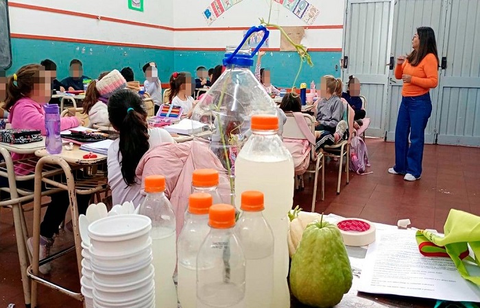 En la Escuela Cicarelli se dictó el “Taller de Exploradores de la Papa del Aire”, destinado a alumnas, alumnos y docentes de segundo grado del turno mañana y de segundo y tercer grado del turno tarde. A partir de un cuento, se desarrolló de manera didáctica el conocimiento sobre este fruto autóctono. Se abordaron formas de cultivo, cuidados básicos y beneficios para la salud. La jornada incluyó una degustación de jugo y dulce de papa del aire, y finalizó con una lotería con palabras clave relacionadas al contenido trabajado, como forma de repasar y reforzar los conocimientos adquiridos.
