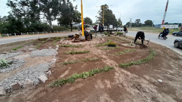 Se realiza trabajos de paisajismo en la rotonda del acceso a la ciudad