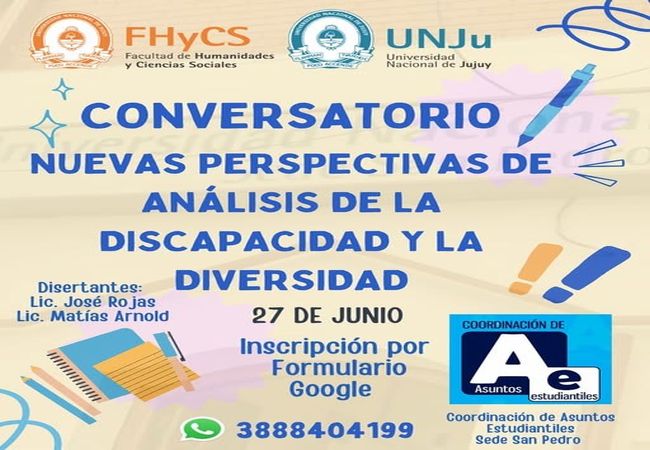 Dijo al respecto, “estamos aquí para promocionar este conversatorio. Es siempre un placer compartir los proyectos que venimos realizando acá desde la UNJu San Pedro. En este caso particularmente la Coordinación de Asuntos Estudiantiles, proponiendo este conversatorio de formación y reflexión crítica sobre diversidad y discapacidad”.
