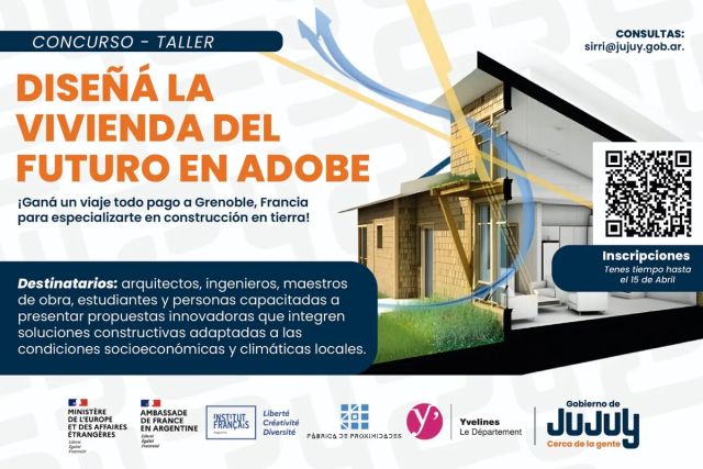 El taller-concurso: Vivienda Social Asequible, Bioclimática y Bajo Carbono en Tierra, es una iniciativa que se inscribe en el proceso de valoración y desarrollo de la construcción en tierra del poder ejecutivo provincial y es financiado por el Ministerio de Relaciones Exteriores (MEAE) de Francia y socios Cooperantes.