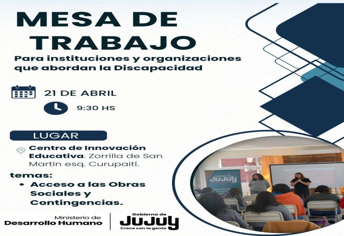 El Ministerio de Desarrollo Humano, a través de la Dirección Provincial de Inclusión de Personas con Discapacidad, dependiente de la Secretaría de Desarrollo Integral, llevará adelante el próximo 21 de abril a las 9:30 hs, la mesa de trabajo junto a instituciones, asociaciones, fundaciones y organizaciones no gubernamentales de toda la provincia que abordan la temática de la discapacidad.