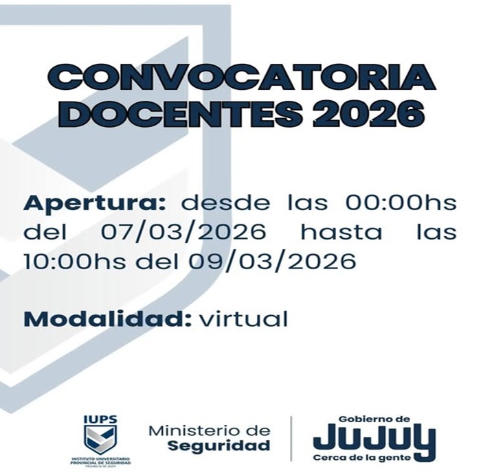 El Rectorado del Instituto Universitario Provincial de Seguridad (IUPS) informa que se encuentra abierta la convocatoria docente.