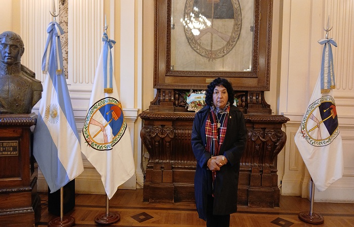 María Elena Salinas, custodia permanente del Salón de La Bandera de Casa de Gobierno, alzó su voz para celebrar, con serena emoción y hondo orgullo, la inminente conmemoración de un siglo de resguardo ininterrumpido de la Bandera Nacional de la Libertad Civil, reliquia única y sagrada para la memoria colectiva del pueblo argentino.