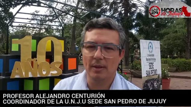 El coordinador de la UNJu San Pedro Alejandro Centurión comentó, “en el marco del décimo aniversario de la sede teníamos planificada una actividad conjunta con equipos de cátedra, docentes, coordinadores de carrera y obviamente estudiantes y egresados para hacer una muestra académica para que la comunidad pueda compartir junto a nosotros, enterarse, conocer”.