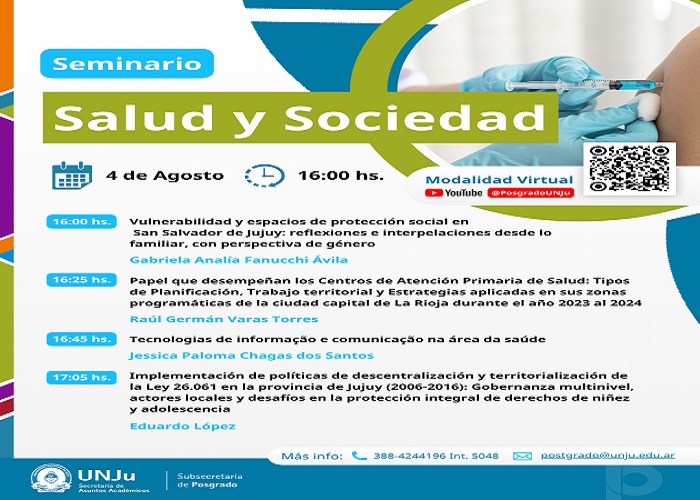 Seminario Salud y Sociedad: lunes 4 de agosto 16 hs. Arg.