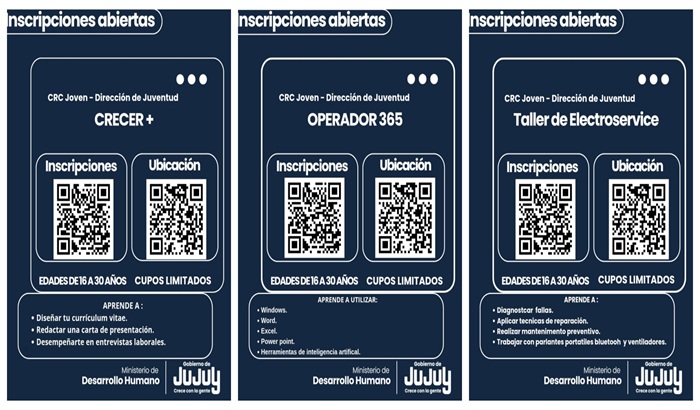 El Ministerio de Desarrollo Humano, a través de la Dirección de Juventud, abre las inscripciones para tres nuevas propuestas formativas en el CRC Joven, orientadas a potenciar habilidades técnicas, digitales y laborales de jóvenes de toda la provincia.