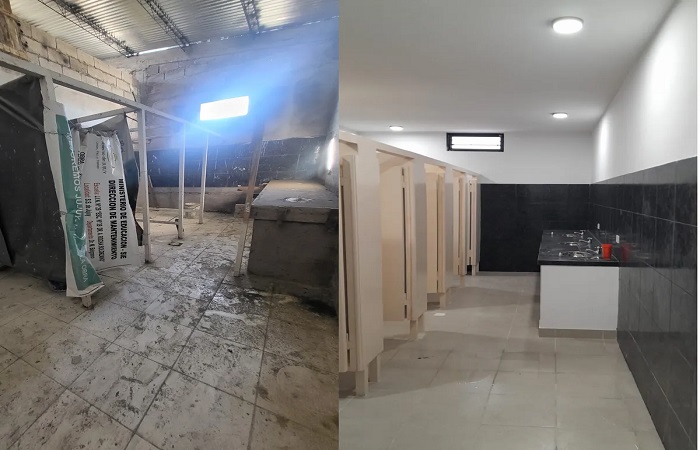 En cuanto al sector de baños, explicó que “se realizaron nuevos baños, con instalaciones sanitarias renovadas, instalación de sistemas de desagües, tanque de reserva, cielorrasos y pintura interior y exterior y la colocación de los artefactos”.