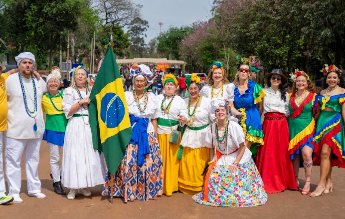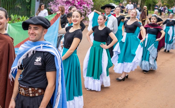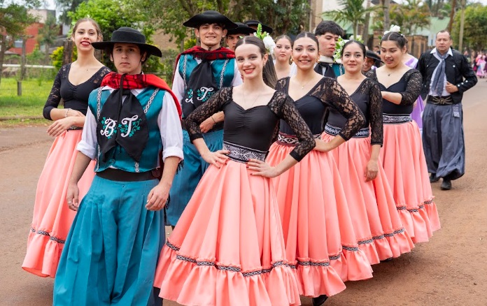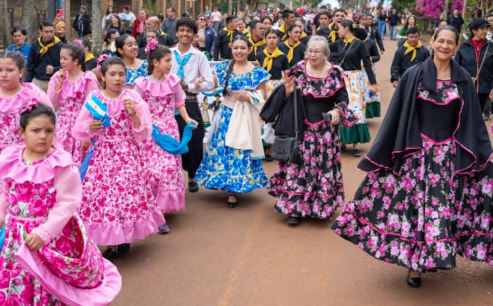 Detrás, el Centro Cultural Argentino, y tras ellos, ballets invitados, instituciones gauchescas, e incluso una delegación del Oberá Tenis Club. Entre todos, hicieron que el desfile fuera un verdadero éxito.