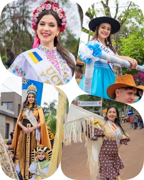 Más tarde fue el turno de Suiza, Alemania, Países Árabes, República Checa, Portugal, Japón, Ucrania, Italia, España, Francia y Brasil. Todas, con sus respectivas Reinas, el colorido, alegría de sus músicas, trajes y danzas típicas. Del desfile también participaron delegaciones invitadas, que no se quisieron perder este gran momento para compartir en la fiesta, provenientes de diferentes ciudades de Misiones como Panambí y Guaraní y de otras provincias como Las Breñas y Presidencia Roque Sáenz Peña, integrantes de la Federación Extranjera de Chaco.