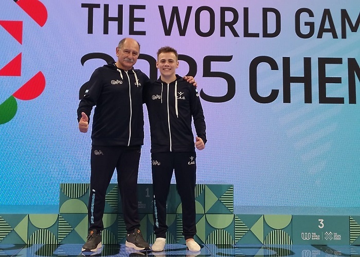 Superando las expectativas luego de la lesión en su tobillo derecho en Portugal, en donde fuera finalista en Trampolín y 3° en Doble Minitramp, nuestro representante puso la bandera nacional en China.