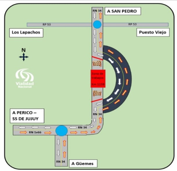 El desvío del tránsito se debe a la ejecución de los trabajos que se realizan en el sector, para construir la autopista de la Ruta Nacional 34, desde el empalme con la Ruta Nacional 66 hasta el límite con la provincia de Salta.