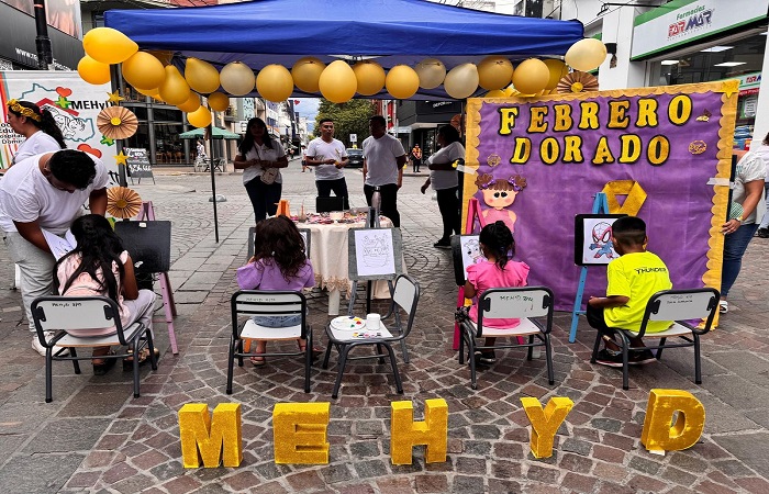 La actividad consistió en la instalación de un stand informativo y lúdico bajo el lema “Febrero Dorado en la MEHyD”.