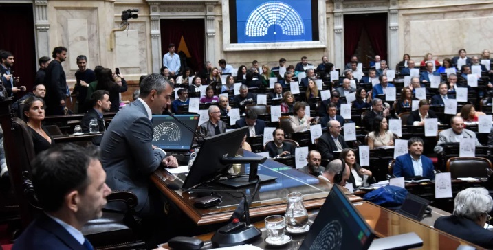 La sesión especial comenzó a las 12:20, pero los diputados opositores se enfrascaron en una discusión con el presidente de la Cámara de Diputados, Martín Menem, por la integración de la comisión investigadora sobre la estafa de la criptomoneda Libra.