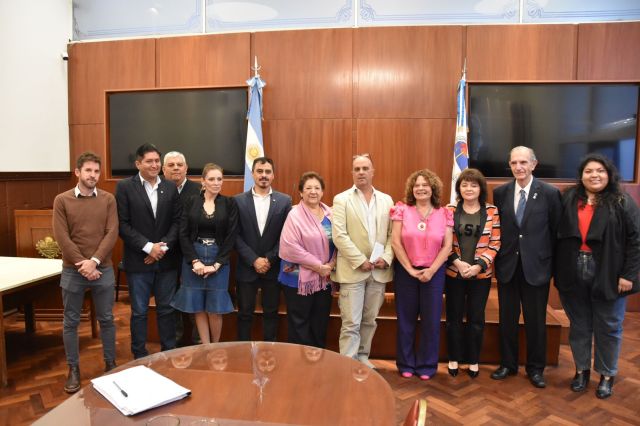En el salón Marcos Paz de la Legislatura los diputados de la comisión de Educación recibieron al presidente del Instituto Belgraniano, Joaquín Carrillo y a su secretario Pedro Bessin quienes realizaron aportes al proyecto impulsado por la comisión de Cultura y Turismo de declarar bien histórico al escudo que hizo pintar el general Belgrano para la escuela que legara a Jujuy.