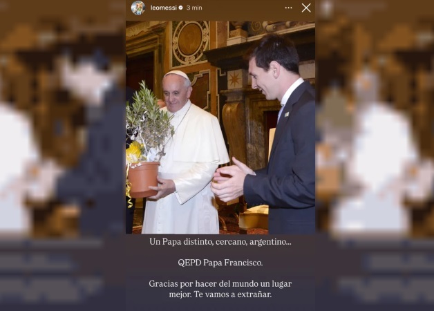 Uno de ellos fue el capitán de la Selección argentina, Lionel Messi, que publicó una historia en su Instagram con una foto juntos sumado a un texto: “Un Papa distinto, cercano, argentino… QEPD Papa Francisco. Gracias por hacer del mundo un lugar mejor. Te vamos a extrañar”.