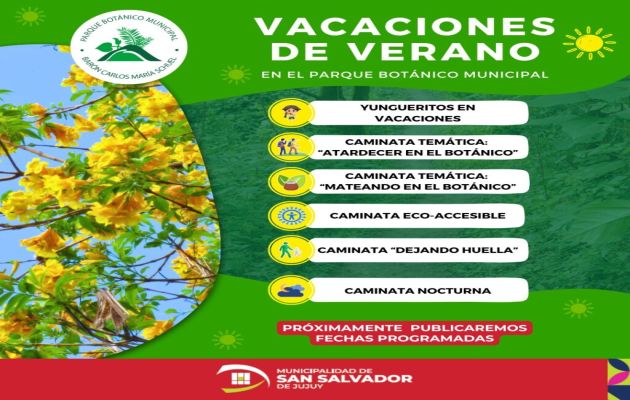 Las fechas y horarios de cada actividad serán informados próximamente a través de los canales oficiales. Desde el Parque Botánico Municipal se invita a toda la comunidad a sumarse a “Verano en el Parque”, una propuesta para conectar, aprender y disfrutar de la naturaleza desde nuevas miradas.