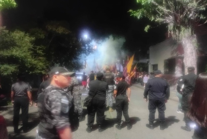 En la intersección de Belgrano y España, la DATOP desplegó un fuerte operativo con más de 40 efectivos, grupos G.E.M. y la Unidad K-9.