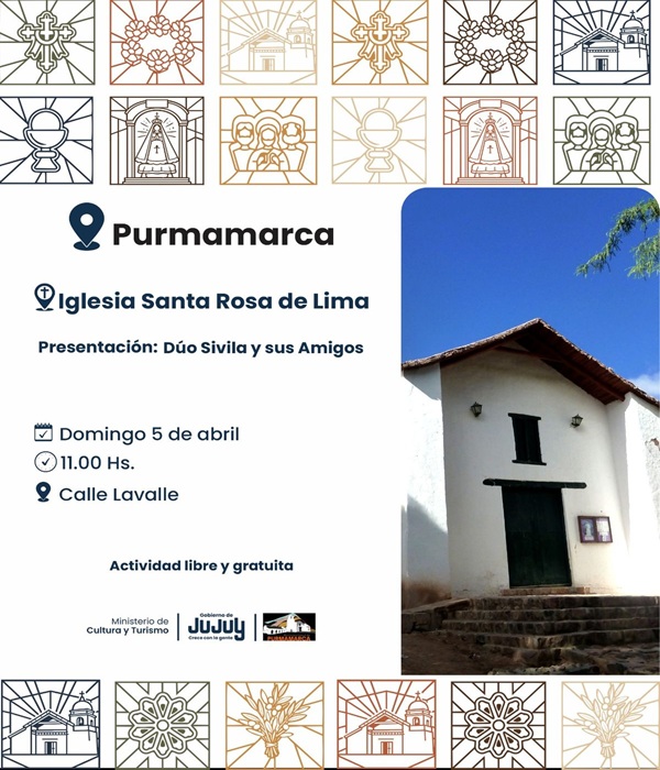 En el marco del ciclo Capillas Musicales que organiza la Secretaría de Cultura de Jujuy, este día domingo 5 de abril a las 11 horas en la Iglesia Santa Rosa de Lima, en Purmamarca, el Dúo Sivila y Amigos presentará un repertorio especialmente seleccionado para la fecha, con obras de compositores jujeños y música de raíz andina que evocan la espiritualidad y renovación propios de esta fecha.