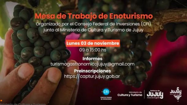La Mesa de Trabajo de Enoturismo, organizada por el Consejo Federal de Inversiones (CFI) junto al Ministerio de Cultura y Turismo de Jujuy, pretende generar un espacio de intercambio entre productores vitivinícolas, prestadores turísticos, gastronómicos y actores vinculados al desarrollo del enoturismo en la provincia.