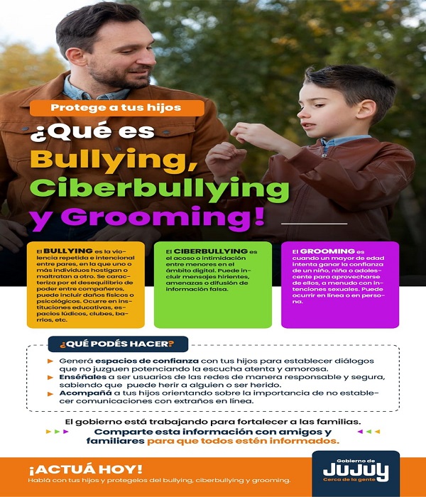 Actúa hoy, hablá con tus hijos y protegelos del bullying, cyberbullying y grooming.
