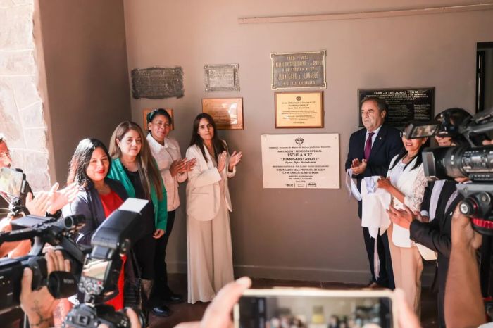 El vicegobernador de la Provincia, Alberto Bernis, y la ministra de Educación, Daniela Teseira, encabezaron en la localidad de Uquía, departamento de Humahuaca, el acto oficial de inicio del ciclo lectivo 2026 y la inauguración de refacciones y ampliaciones integrales en la Escuela Primaria Nº 27 “Juan Galo Lavalle” y el Colegio Secundario Nº 26.