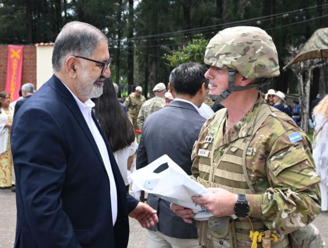 Durante su intervención, el intendente Jorge subrayó la importancia de mantener una relación cercana entre el municipio y las Fuerzas Armadas, “venir a que se presenten nuevas autoridades significa refundar esta voluntad permanente del municipio de tener un vínculo directo con nuestras Fuerzas Armadas, con los dos regimientos que tenemos en nuestra jurisdicción, el 5 y el 20, que de alguna manera configuran la posibilidad de hacer tareas conjuntas. Recordamos grandes acontecimientos, como la pandemia, donde se hizo un gran trabajo en conjunto, conmemorando el esfuerzo de líderes como el General Aoki y de todo el equipo que estuvo presente en los barrios de la capital y de toda la provincia”.