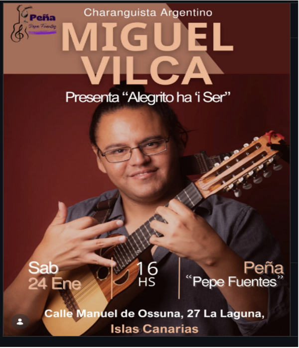 El 24 de enero presenta su disco en Tenerife, en la Peña «Pepe Fuentes». Dos días después, el 26 de enero, participa de un taller único donde Pedro Ageno y Vilca exploran el paralelismo instrumental entre el timple canario y el charango jujeño, analizando semejanzas y diferencias en técnicas de rasgueo, arpegios, escalas, armonía, improvisación y composición.