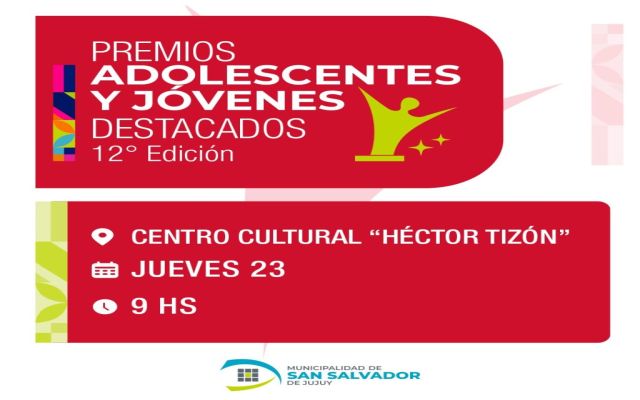 El jueves 23 de enero, a las 9 horas, se llevará a cabo la ceremonia de entrega de los premios “Adolescentes y Jóvenes Destacados 2025” en el Centro Cultural Héctor Tizón.