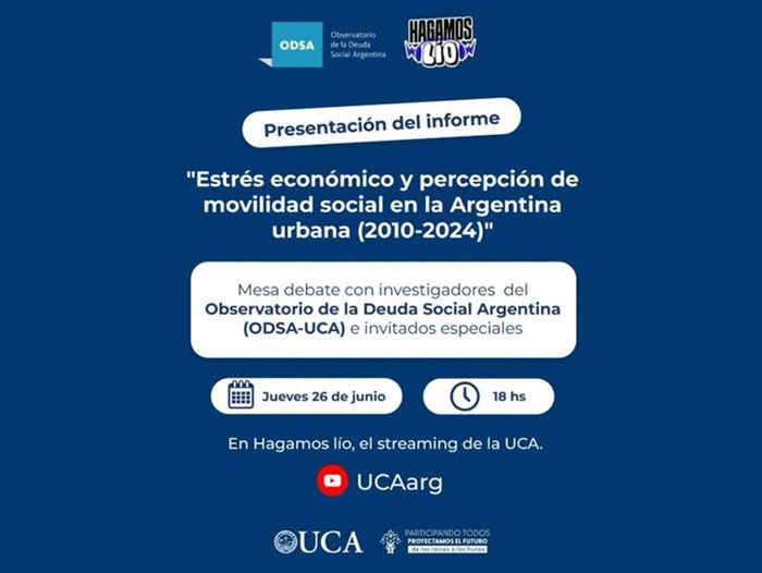 El Observatorio de la Deuda Social Argentina de la Universidad Católica Argentina (ODSA-UCA) presentará el próximo jueves 26 de junio el informe «Estrés económico y movilidad social en la Argentina urbana (2010-2024)».