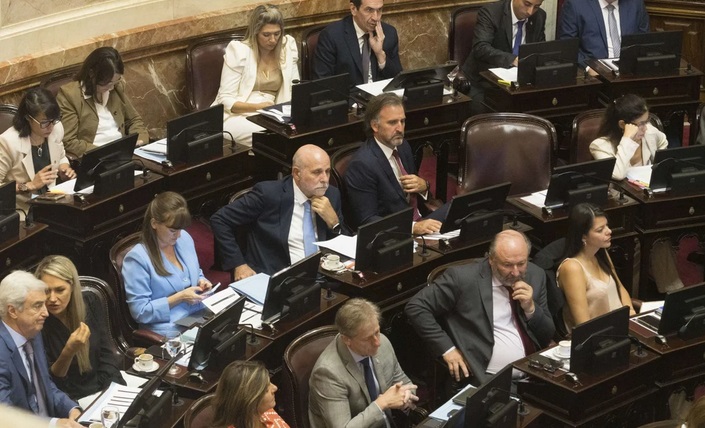 Karina Milei, Diego Santilli, Martín Menem y Lule Menem presenciaron el desenlace de la votación desde una platea del recinto.