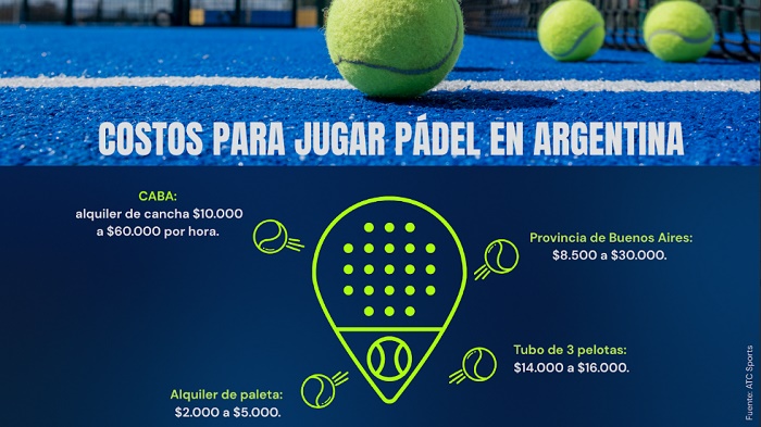 En 2025, los costos dependen tanto de la zona como de la calidad de las canchas. ATC Sports señala que en la Ciudad de Buenos Aires, la tarifa por hora va desde $10.000 hasta $60.000, mientras que en el conurbano el precio inicial es de $8.500. En tanto, alquilar una paleta cuesta entre $2.000 y $5.000, y un tubo de pelotas se consigue por valores que oscilan entre $14.000 y $16.000.