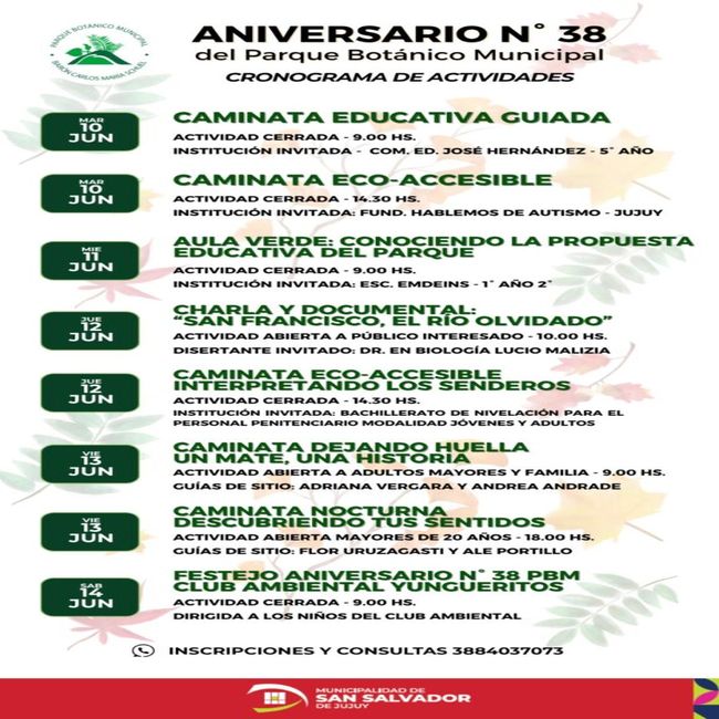 Desde la organización recordaron que algunas propuestas están destinadas exclusivamente a instituciones invitadas, mientras que otras están abiertas al público general. Para participar, es necesario inscribirse previamente a través del WhatsApp 388 403-7073.