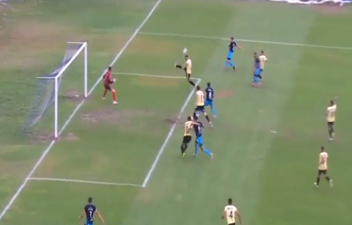 Bruno Palazzo, lateral derecho del Lobo, había rematado con potencia al arco y el defensor de Madryn, Diego Martínez, estiró la pierna para rechazarla pero la pelota terminó dándole en la mano izquierda (extendida).