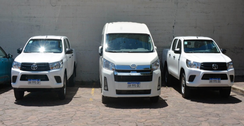 Se trata de dos camionetas marca Toyota modelo Hilux 4×2 AT y un minibús Toyota modelo Hice GL AT con capacidad para transportar 13 pasajeros.