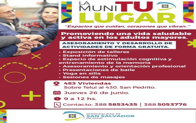 Este jueves 26, la Municipalidad de San Salvador de Jujuy llevará adelante una nueva edición de “La Muni en Tu Lugar”, una propuesta integral destinada a promover una vida saludable y activa en personas adultas mayores.