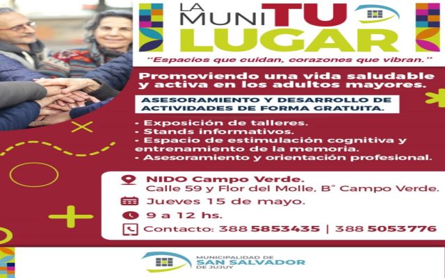 En dicho marco, este jueves, 15 de mayo, el programa “La Muni Tu Lugar” llegará al Centro de Participación Vecinal de Campo Verde para desarrollar actividades de promoción y asesoramiento gratuitos destinados a ese sector de la población.