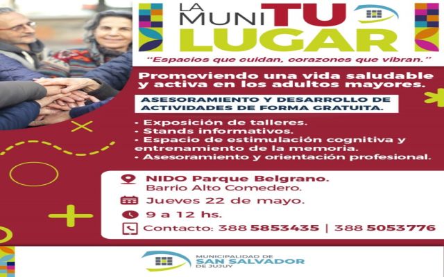 En este sentido, durante el horario de 9 a 12 horas, los adultos mayores acompañados de los vecinos podrán solicitar asesoramientos y desarrollo de actividades gratuitas, entre ellas: exposición de talleres; Stands informativos; Espacio de estimulación cognitiva y entrenamiento de la memoria. Además de Asesoramiento y orientación profesional.