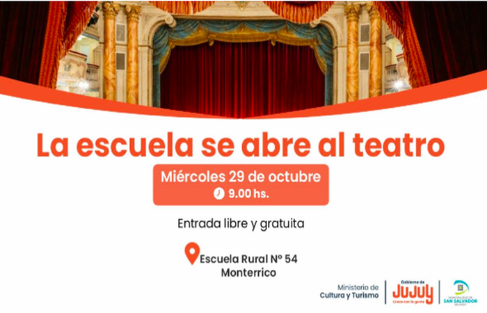 La función se realizará en la Escuela Rural N° 54 de Monterrico con entrada libre y gratuita, sin necesidad de reserva previa. Una oportunidad para que la comunidad educativa y el público en general disfruten del teatro en un espacio no convencional.