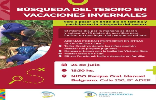 En el marco de las vacaciones invernales, el próximo viernes 25 de julio a partir de las 15:30 horas, el NIDO Parque General Belgrano, ubicado en el barrio Alto Comedero, será escenario de una jornada de diversión y entretenimiento para los más pequeños.