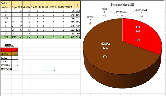 Desde la lista Morena anoche, luego de finalizada las mismas de acuerdo a los datos con cuentan se dieron ganadores por amplio margen con 1.236 votos a 603 y señalaron que esta es una ventaja irreversible.