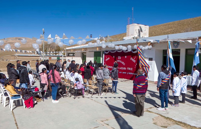 También se compartió la celebración de los 25 años de padrinazgo del Colegio Farmacéutico y de Agustín Perassi. Con mucha emoción se escucharon palabras de Julia Gutiérrez, nieta del fundador de la Escuela; de Basilio Colque un docente jubilado; de Zulema Arjona directora jubilada y finalmente de Ema Chorolque en representación de la comunidad originaria.