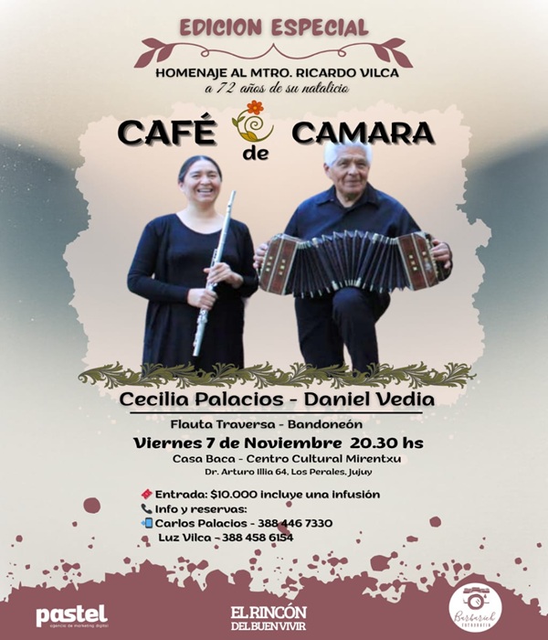 La velada contará con la presentación de Daniel Vedia junto a Cecilia Palacios, quienes ofrecerán un recorrido sonoro por la obra de Vilca y su influencia en la música andina contemporánea, con la mistura de sonidos entre bandoneón y flauta traversa.