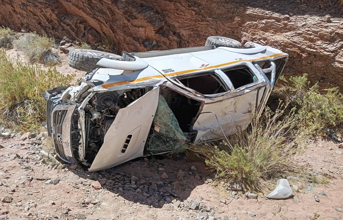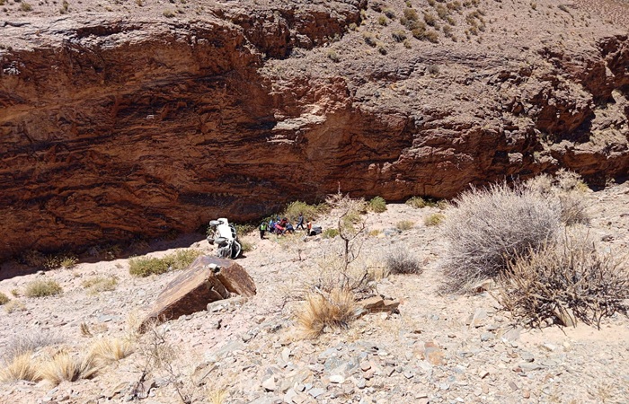 El accidente, reportado a las 13:15 horas, involucró una Toyota Hilux que se precipitó cerca de 60 metros hasta el lecho seco de un río, dejando a sus ocupantes en una situación de alto riesgo.