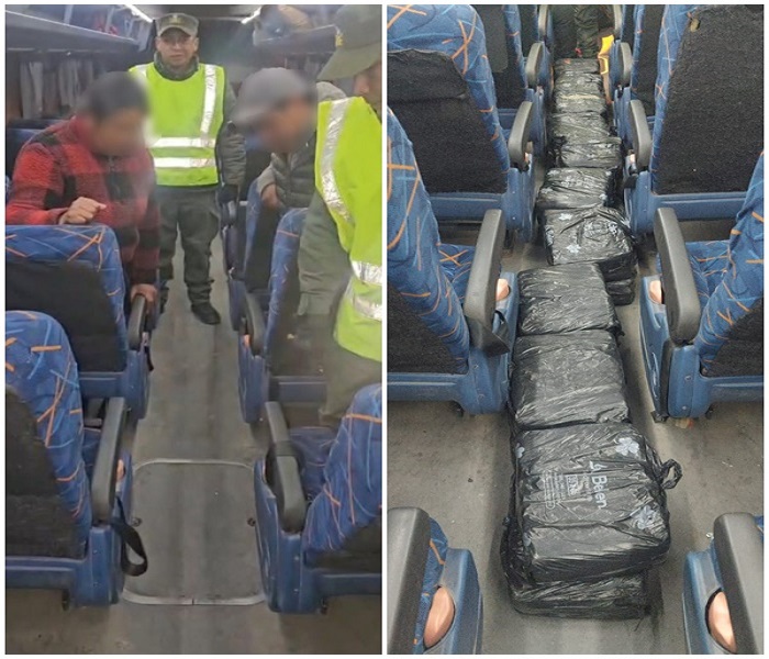 Con previa autorización y con la marcación positiva del can de la Fuerza, los uniformados profundizaron la requisa y con la utilización de herramientas, lograron sacar paquetes que emanaban un fuerte olor a hojas de coca.