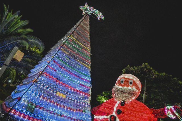 Cachi precisó que el árbol de navidad está compuesto por 1.700 botellas, aunque aclaró que “se lograron reciclar un total de 5.000 botellas, que fueron destinadas al trineo y a las 27 esferas. Se utilizaron diseños en colores y se trabajó de manera intensiva con materiales reciclados y tecnología”.