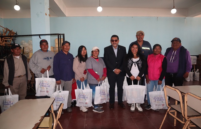 “Esta pequeña ayuda, es un presente para los empleados municipales que día a día trabajan para generar transformaciones y poner a la ciudad de La Quiaca en otro contexto, en el que realmente amerita y merece”, expresó Velazquez, y señaló, “con recursos propios del municipio, junto al gabinete y gracias a la coordinación de la titular, encargada de Suministros, Graciela Chorolque, pudimos concretar hoy esta acción que nos alegra en gran manera”.